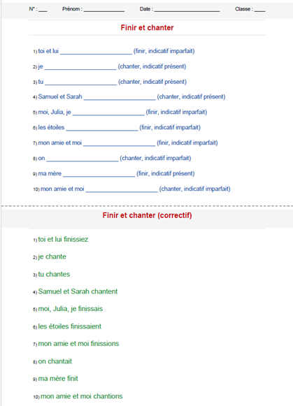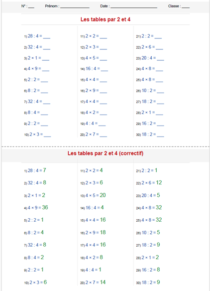 Feuille d'exercices et corrigé en un clic : chaque page A4 est