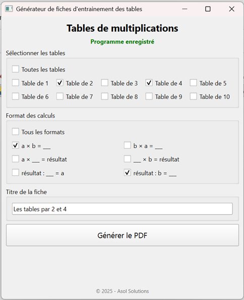 Génération automatique d'une infinité de fiches d'exercices
